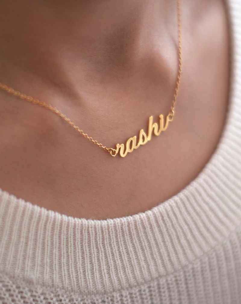 Chandni Sehgal lists STAC’s Name Necklace as an 18kt solid gold fashion alternative to Carrie Bra...