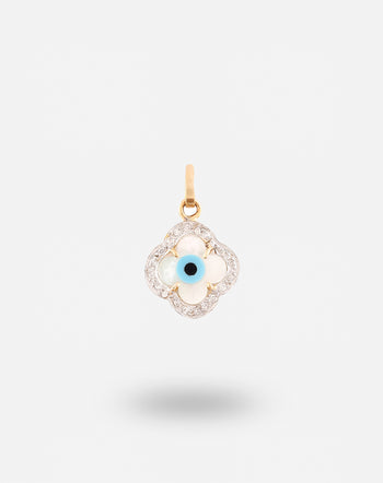 Evil Eye Charm Pendant - Clover with Diamonds18Kt Solid Gold