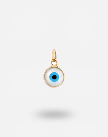 Evil Eye Charm Pendant - Round Small18Kt Solid Gold