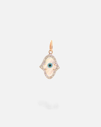 Evil Eye Charm Pendant - Hamsa Hand with Diamonds Small18Kt Solid Gold