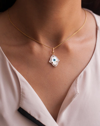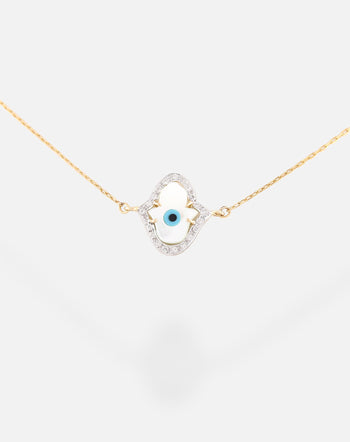 Hamsa Hand Evil Eye Diamond Necklace18Kt Solid Gold