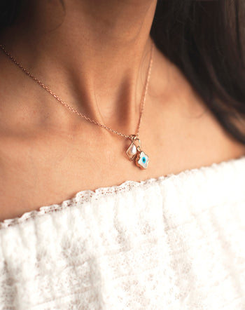 Evil eye jewellery works as a talisman that attracts good energy while keeping bad vibes far away! Consider your evil eye necklace as a protective shield against negativity.