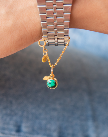 Malachite Birthstone (Taurus) Watch Charm Set18Kt Solid Gold