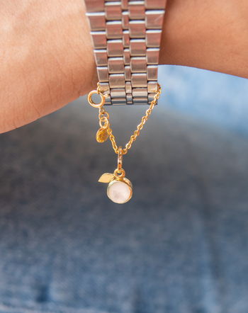 Pearl Birthstone (Gemini) Watch Charm Set18Kt Solid Gold