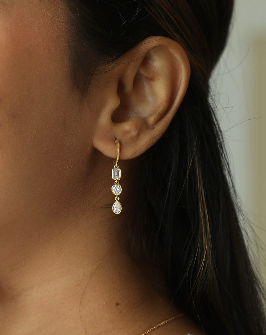 Effortless elegance drops right here! These diamond drop earrings in 14kt gold feature lab-grown diamonds in different shapes that dangle delicately, creating beautiful movement and sparkle. Dress them up or down - they're versatile enough for any occasion.